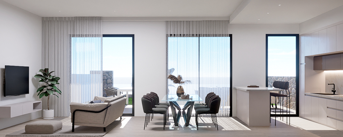 Budynki wyposażone są w windy. Do apartamentów przynależą miejsca parkingowe w hali garażowej. Kameralne osiedle oferuje zapierające dech w piersiach widoki na morze. Posiada dostęp do dużego basenu i siłowni.