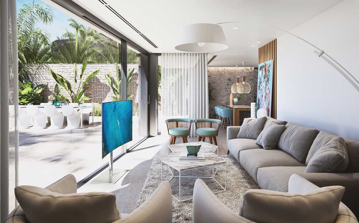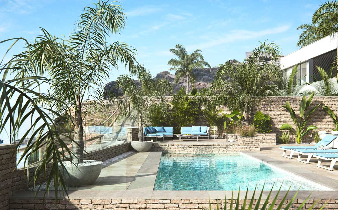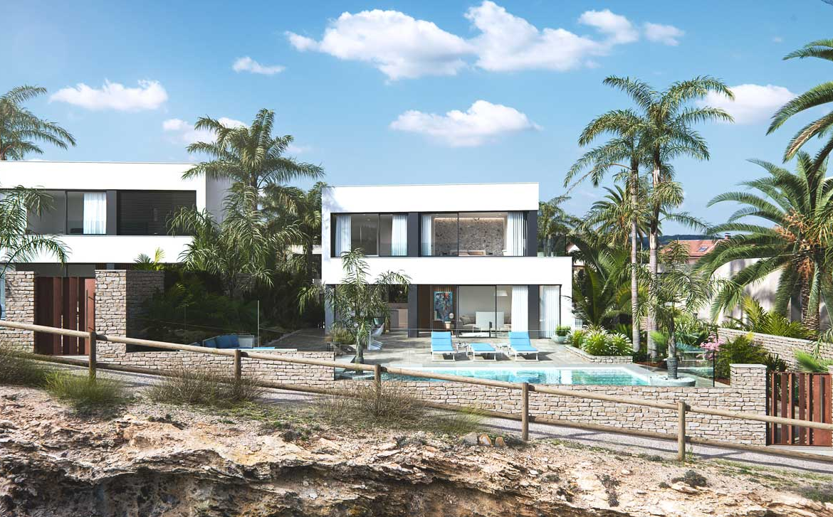 Domy posadowione są na działce o powierzchni 500 m2, a ich całkowita powierzchnia zabudowy wynosi od 254 – 265 m2. Posiadają: ogród z systemem odprowadzania wody w podłodze, całkowicie wykończone i konfigurowalne, w tym roślinność, nawadnianie i oświetlenie; indywidualny podgrzewany basen o wymiarach 9×4 metry, z widokiem na morze, tarasy na różnych wysokościach, które tworzą przytulne miejsce otoczone roślinnością i niekończącymi się widokami na morze; garaż na jeden samochód i dodatkowe miejsce postojowe – pilot na podczerwień daje zautomatyzował dostęp do drzwi otwieranych na ogród i garaż.