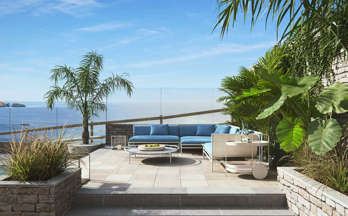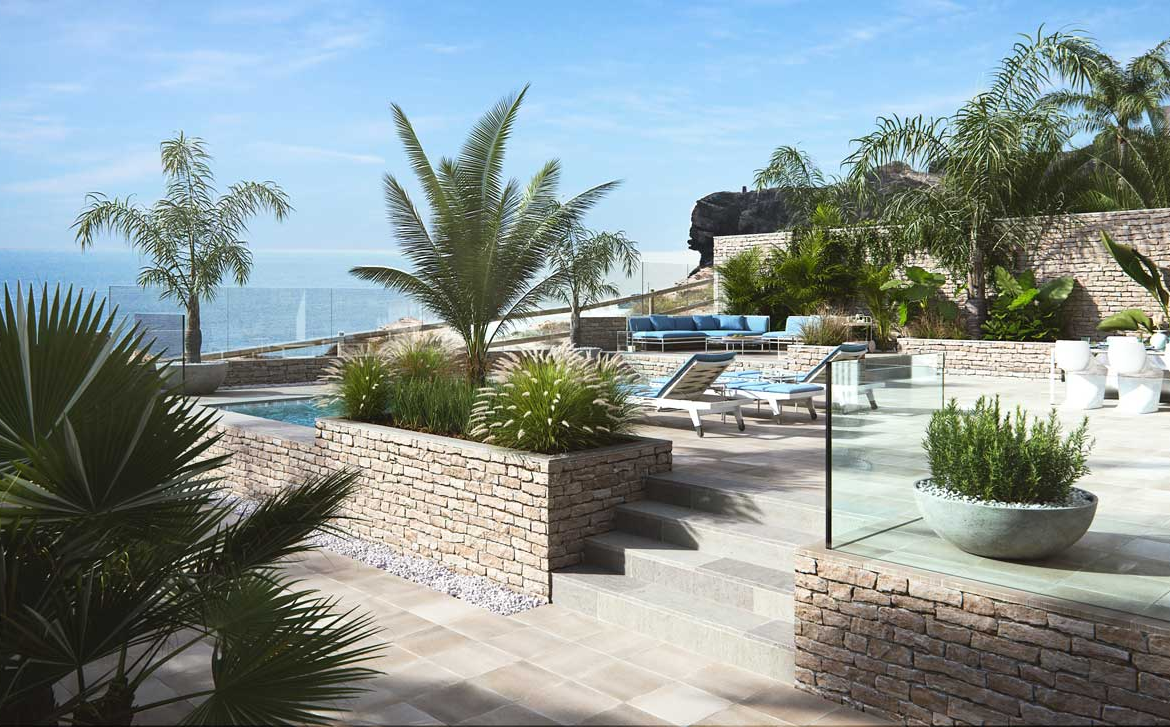 Przytulne strefy wypoczynkowe zapewniają relaks i odpoczynek z nieskończonym widokiem na Morze Śródziemne.