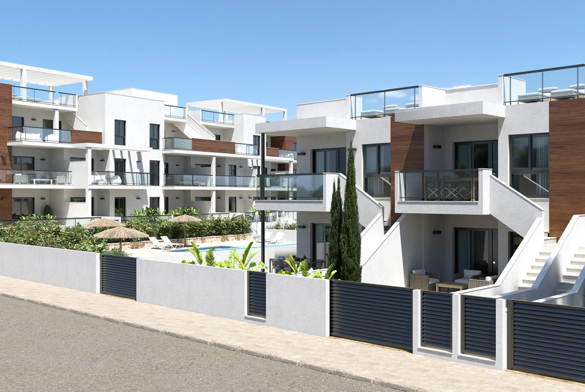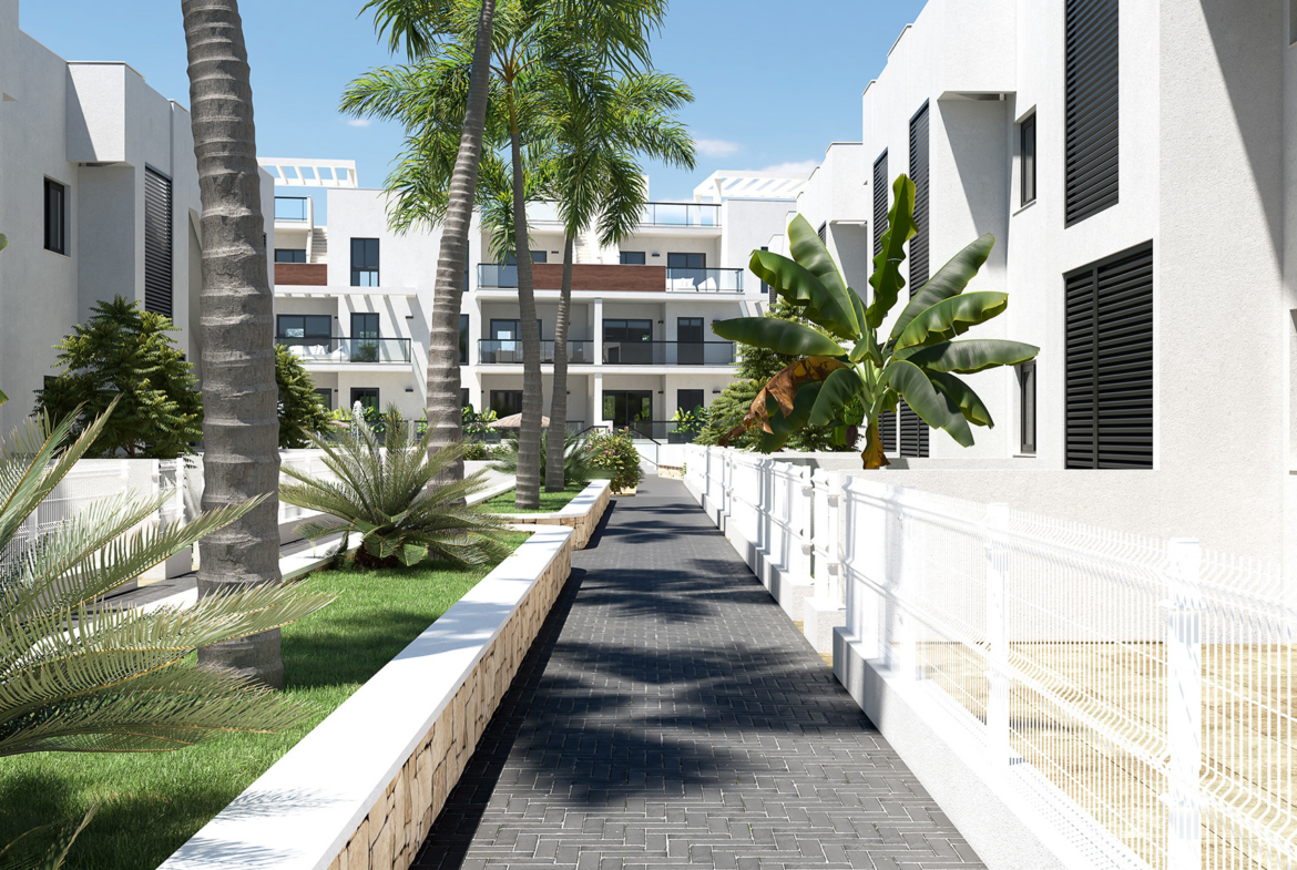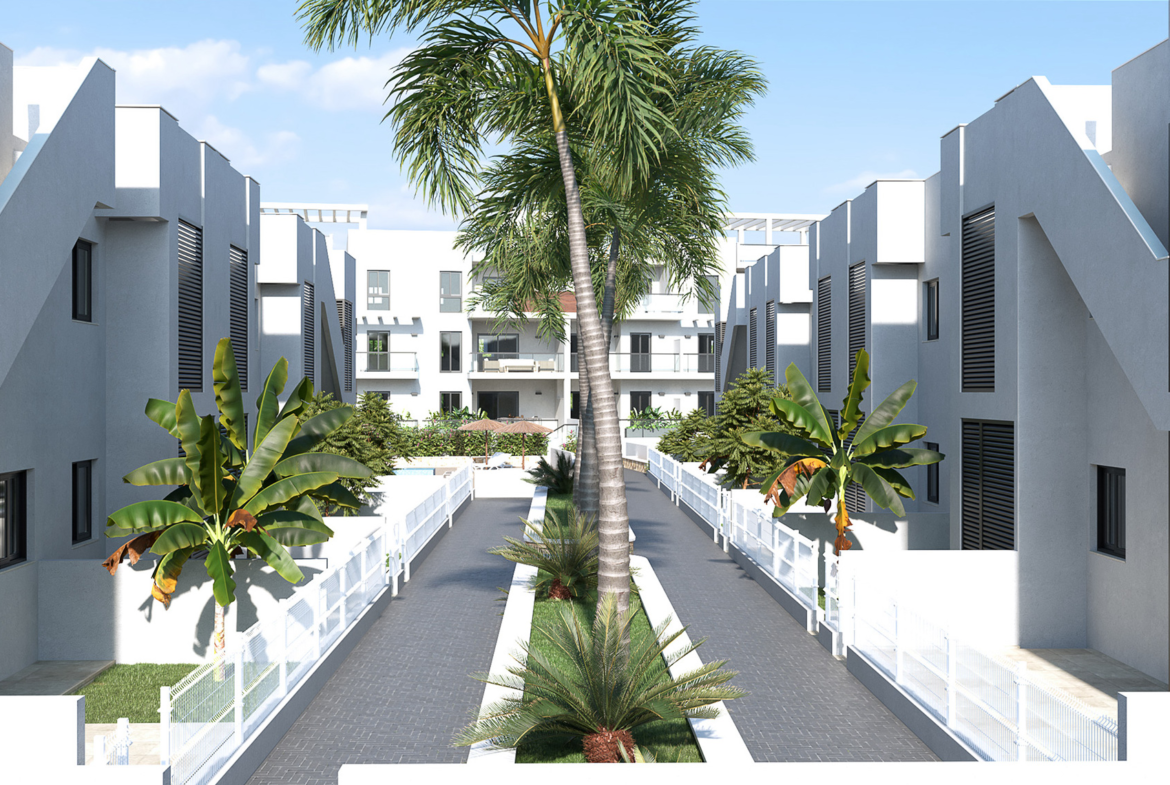 Kameralny kompleks z basenem znajduje się w Torre de la Horadada, TYLKO 200 m od morza i piaszczystej plaży Las Higuericas. W pierwszej fazie dostępnych jest 27 apartamentów z 2 i 3 sypialniami i 2 łazienkami, w kameralnych budynkach typu bungalow i 3-kondygnacyjnym, ze wspólnym basenem i dużym ogrodem. Wszystkie mieszkania posiadają duże tarasy lub solarium.