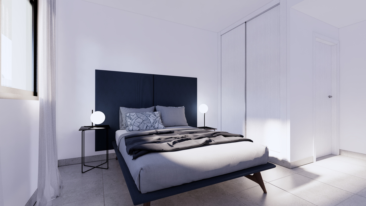 Oferujemy nowe eleganckie apartamenty w kameralnym kompleksie ze wspólnym basenem. Osiedle składa się z 24 bungalowów z 2 lub 3 sypialniami i 2 łazienkami. Mieszkania na parterze posiadają ogródek, a na piętrze solarium. Do każdego apartamentu przynależy miejsce parkingowe.